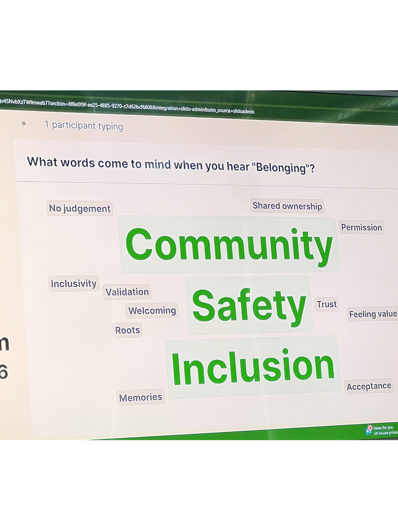 Running to the next Meet-Up we’re prompted to click on a QR code which opens a word cloud generator, asking us what comes to mind when we hear the word 'Belonging’, that has been chosen to be ‘deliberately wide’, and though I’ve been warmed up already, my cynical side won’t allow me to go beyond ‘generic’ and ‘buzzword’ so I choose not to contribute. This chat is by the ABRSM, and the moderator Hazel Wieboldt is enthusiastic and effervescent which brings you in; and a relatively healthy crowd listens appreciatively; the atmospheric hum of the exhibition on the other side of the curtain is off-putting but she deals with it well; she’s encouraging fun ice breaking games that are successful, and I meet French Dorian and Australian Dorian who are actually twins that never met previously:
